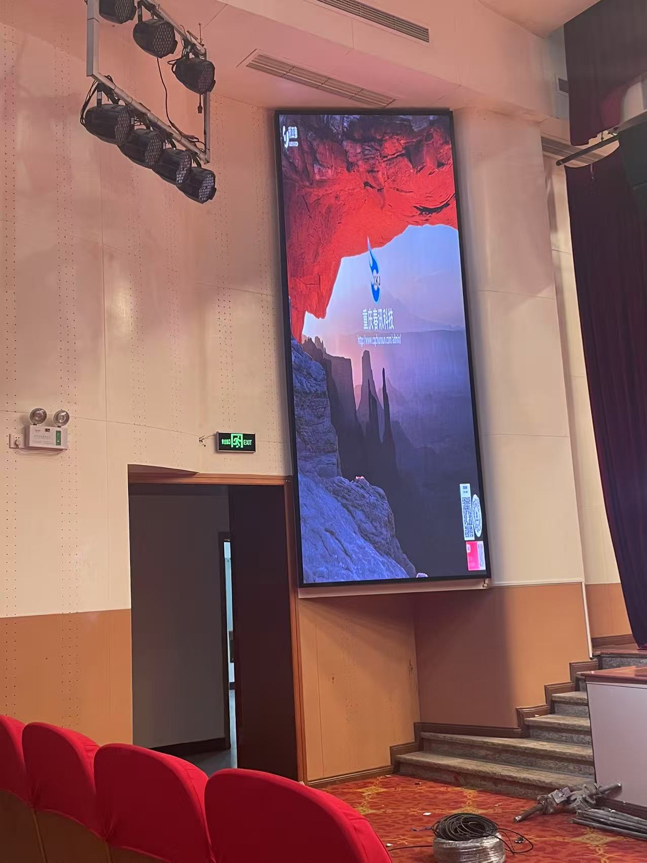 某大学音乐厅左右两侧各6平方米的面积,采用利亚德室内P2.0间距产品,竖行安装方式,按照客户要求两天完成交付!