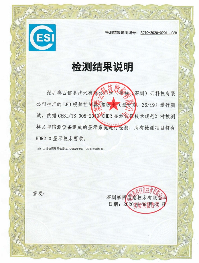 HDR认证-检测结果说明