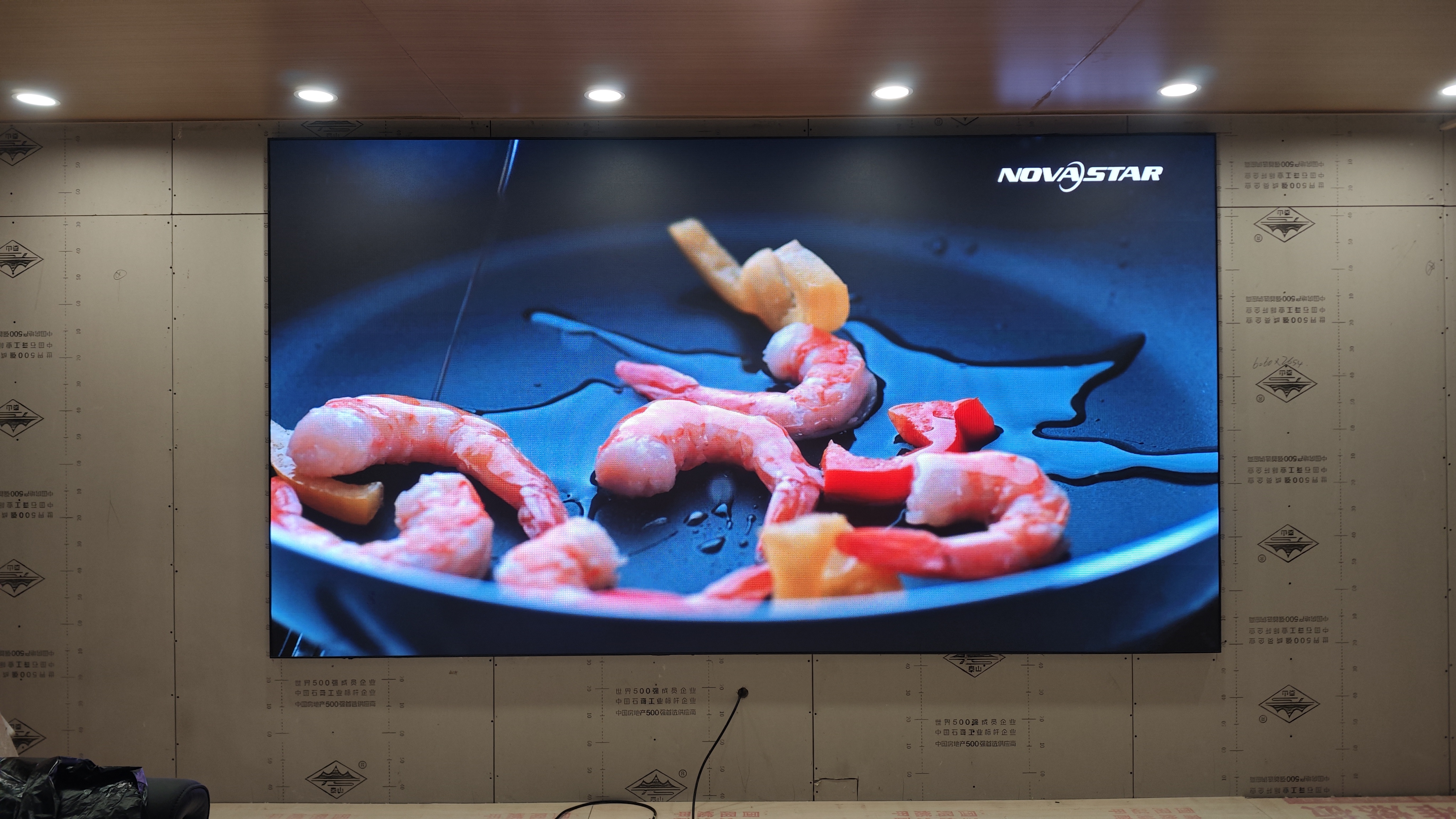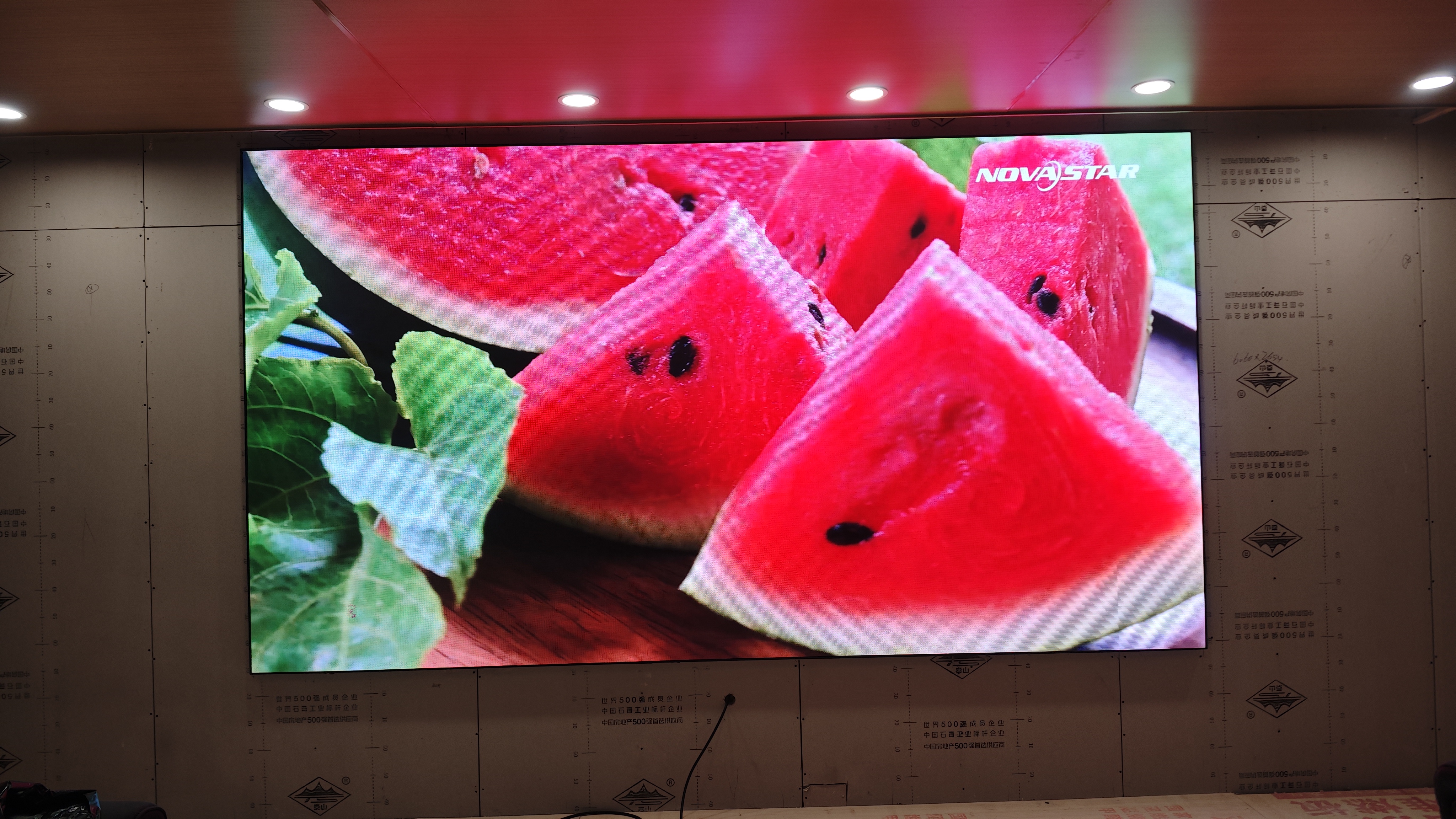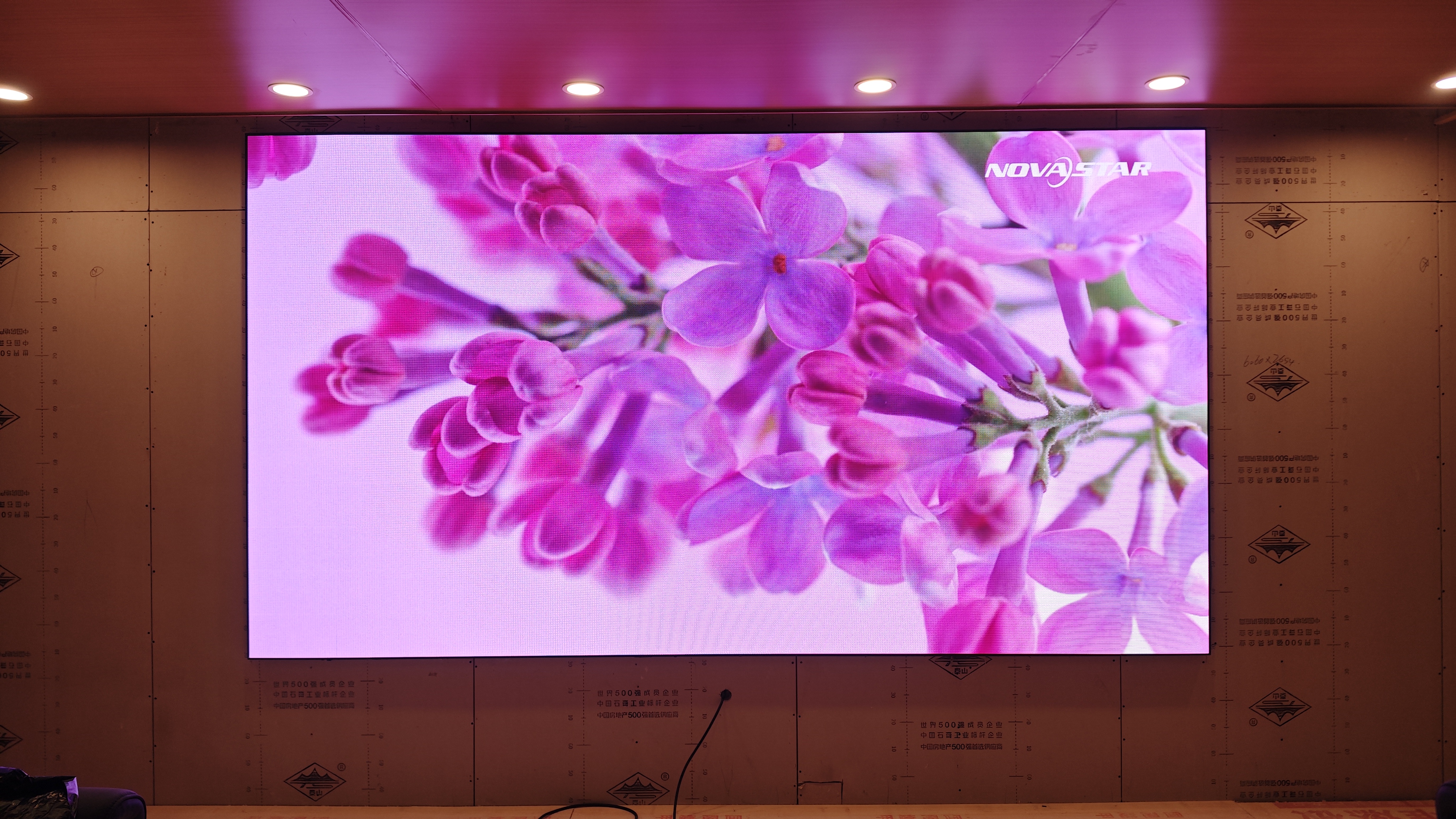 采用利亚德室内P2显示屏产品,屏体尺寸为3.52*1.92米,一天完成交付。